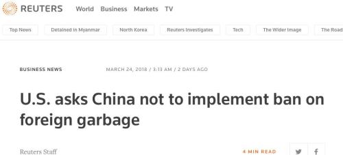 據(jù)路透社報(bào)道,會議上美方代表表示,中國對于可回收品的進(jìn)口限制已經(jīng)極大地中斷了全球廢金屬供應(yīng)鏈的運(yùn)轉(zhuǎn),要求中國取消對“洋垃圾”的進(jìn)口禁令。